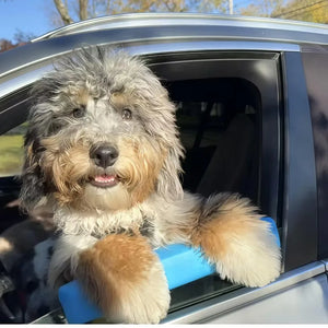 Dogs love the feeling of fresh air rushing past them. They lean forward, rest their chin, and stay there for minutes at a time. But car windows weren’t designed for that. The rigid glass edge creates constant pressure on your dog’s chin and neck - especially during longer drives, bumpy roads, or sudden stops. Over time, this can make your dog uncomfortable, restless, and unable to settle during car rides. Instead of relaxing, they shift positions, pace, bark, or chew - trying to find relief.